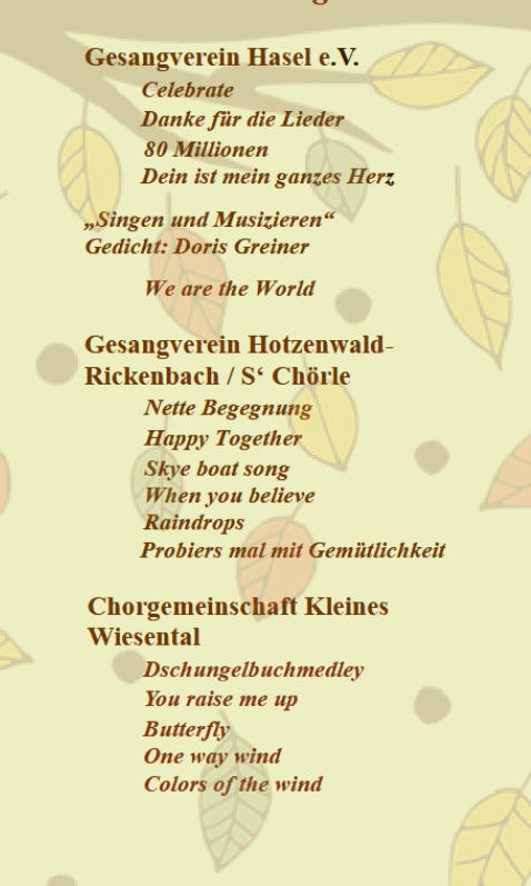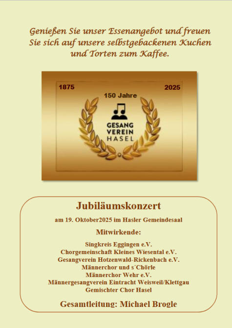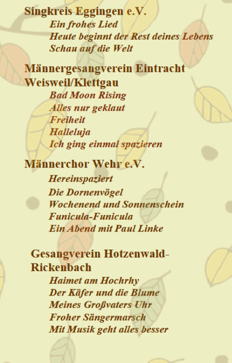 würden. Der Verein braucht Sängerinnen und Sänger, daher bitten wir, neue und alte Sänger, verschließt Euch nicht, kommt zu uns.